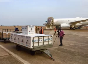 Livraison du vaccin russe «Spoutnik V» à Conakry, le 19 octobre 2021 (Crédit photo: Ambassade de Russie en Guinée)