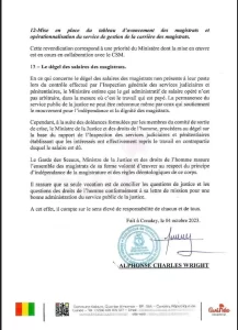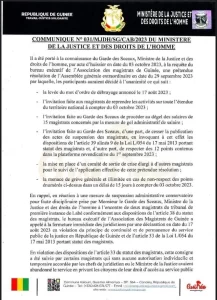 Dans un long arrêt, le ministre de la Justice et des Droits de l’homme, Alphonse Charles Wright, pris le mardi 4 octobre 2023, a répondu à l’Association des Magistrats de Guinée (AMG) qui dans une résolution avait mis fin, la semaine dernière, au débrayage des juges du pays depuis le 17 août 2023.