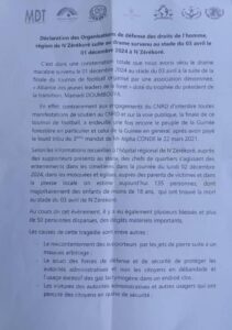 Elles invitent également les familles des victimes à se regrouper en association pour porter plainte contre les auteurs de cette tragédie devant les institutions judiciaires compétentes, tant au niveau national qu’international. Enfin, elles appellent la population de N’Zérékoré au calme et à la retenue dans cette période difficile.