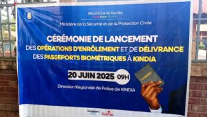 Kindia, 20 juin 2025 – Le Ministre de la Sécurité et de la Protection civile, le Général Bachir Diallo, a lancé officiellement ce jeudi les opérations d’enrôlement et de délivrance des passeports biométriques à Kindia. Cette initiative marque une étape importante dans la décentralisation des services administratifs en Guinée, au grand soulagement des habitants de la région.