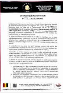 Selon le département de l’Administration du Territoire, cette opération s’inscrit dans le processus de réorganisation et d’encadrement du fonctionnement des partis politiques en Guinée. Elle doit également contribuer à assainir le paysage politique et à garantir le respect des règles régissant les organisations à caractère politique.