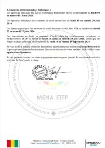 Rattrapage des cours : La reprise effective des cours après les congés a été réaffirmée pour le 8 avril 2026, avec une consigne stricte de respecter le volume horaire réglementaire pour achever les programmes.